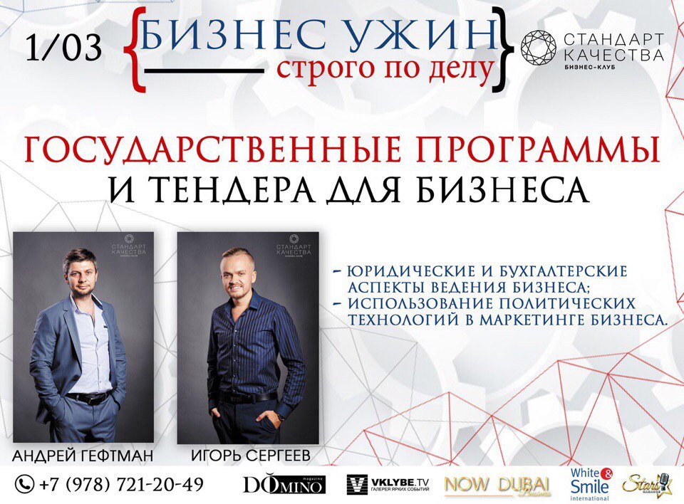Бизнес клуб «Стандарт Качества» создан для самых лучших и успешных предпринимателей России и Объединённых Арабских Эмиратах!